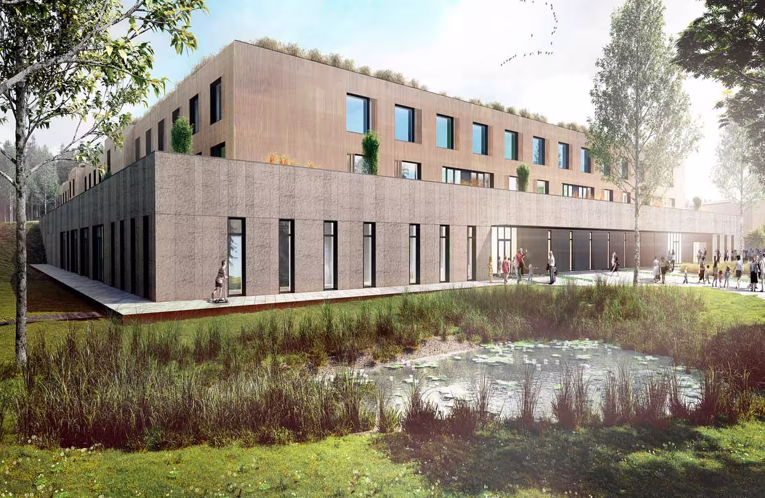 Le projet regroupe deux entités principales : le bâtiment scolaire et le hall sportif.