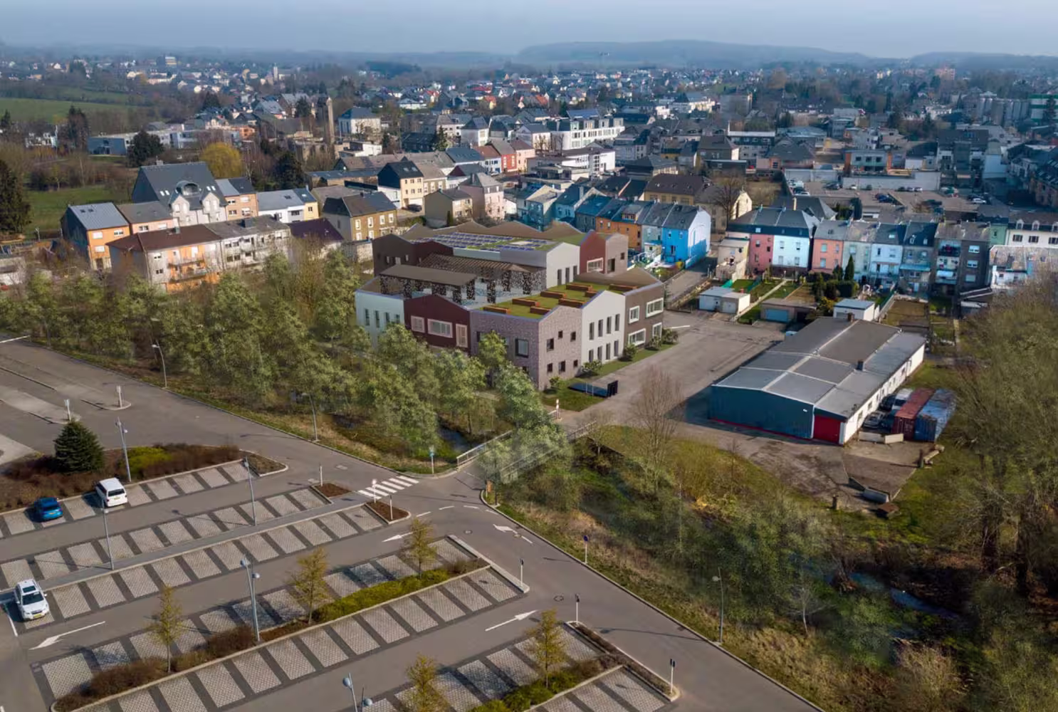 Sur le plan architectural, les maisons mitoyennes avoisinantes présentent une diversité de formes, de matériaux et de teintes, reprise dans le projet par l’usage combiné de matériaux variés : bois, panneaux, crépi et briques recyclées.
