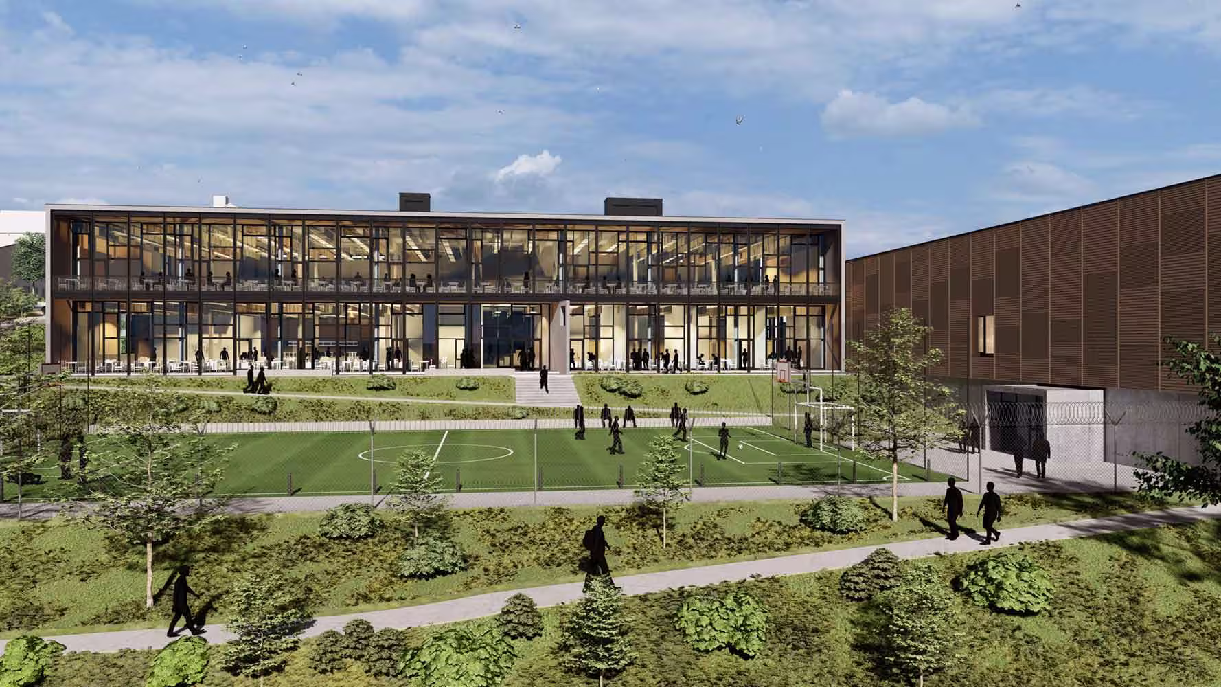 L’aménagement extérieur jouera un rôle clé dans cette transformation. Un terrain multisports viendra enrichir les infrastructures dédiées aux activités physiques, tandis que l’ensemble du site bénéficiera d’une refonte complète des espaces de circulation et des infrastructures. Un nouveau parking de 150 places sera créé à proximité du hall de sports, complété par des arrêts de bus stratégiquement positionnés pour faciliter l’accessibilité.